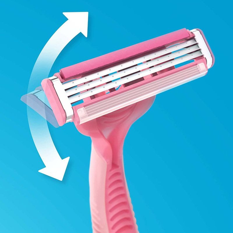 De drie gecoate scheerbladen blijven lang scherp en voorkomen huidirritaties. De lubrastrips zorgen voor een comfortabele scheerbeurt. De meedraaiende scheerkop volgt de contouren van het lichaam. Ook beschikken de Gillette Venus Simply wegwerpscheermesjes zich over een verzorgende indicator strip. Deze strip vervaagt wanneer het scheermesje vervangen moet worden.
