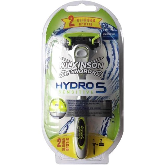 Wilkinson Sword Hydro5 Sensitive Apparaat inclusief 1 scheermesje + 2 losse navulmesjes De Hydro 5 scheermesjes is een scheersysteem met 5 mesjes van Wilkinson Sword voor de gevoelige huid! Dit scheersysteem bevat ook een gel reservoir met vitamine B5 zodat de huid tijdens het scheren wordt gehydrateerd. De Wilkinson Hydro5 bevat 5 Ultra Glide mesjes, waarbij extra contactpunten huidirritatie voorkomen en zorgen voor een optimaal scheerresultaat. Als extra innovatie heeft de Hydro5 een fliptrimmer; dit is een extra toevoeging aan het scheermesje voor moeilijk bereikbare plaatsen en een verfijnde afwerking. Dit Wilkinson Hydro 5 Sensitive Scheersysteem bevat ook een plastic standaard om de houder op te laten drogen na gebruik.